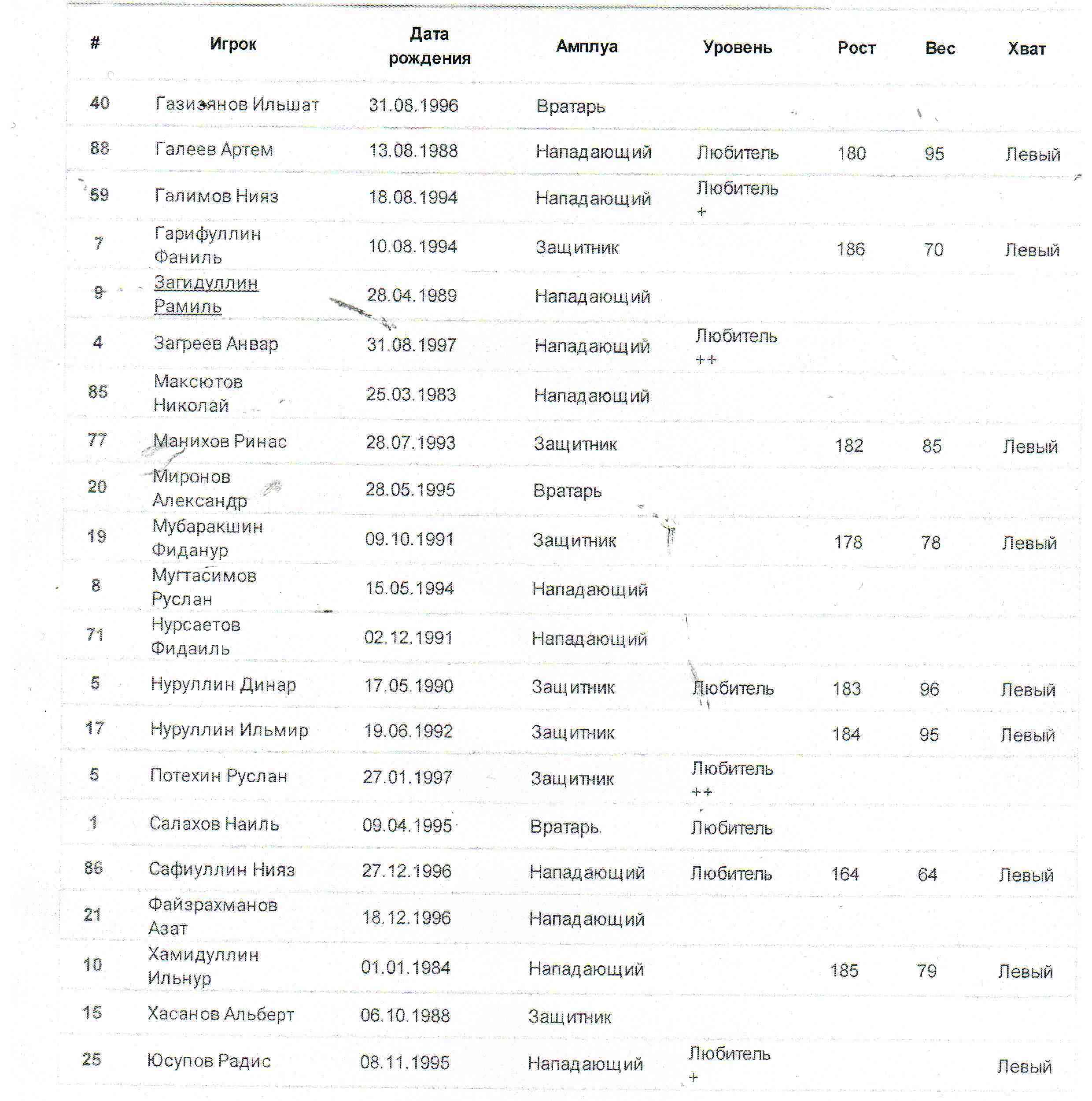 Список команды «Тюлячи»