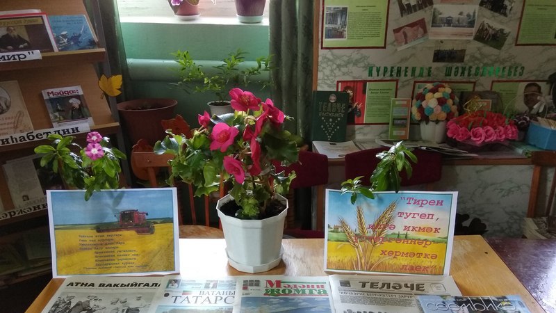 В душе каждого человека горит искорка любви и уважения к сельскому труженику. Он нелёгок и необычен труд земледельца, интересна и своеобразна его жизнь. Работу крестьянина не разложишь поровну на каждый день, её не измеришь ни светом дня, ни усталостью. “Тирен түгеп илгә икмәк үстергәннәр хөрмәткә лаек”- с таким названием открылась выставка в Айдаровской сельской библиотеке, который информирует читателей о ходе уборки зерновых культур, со статьями об урожае 2018года из краевых и районных периодических изданий, о пользе хлеба, о его ценностях, о тяжелом труде хлебороба и уважительном отношении к труду людей, растящих хлеб.