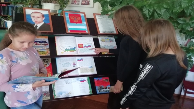 Посетители библиотеки узнали, что означают цвета на флаге России? Откуда появился двуглавый орел на гербе и монетах? В каком году и кто придумал музыку и слова к гимну России? …