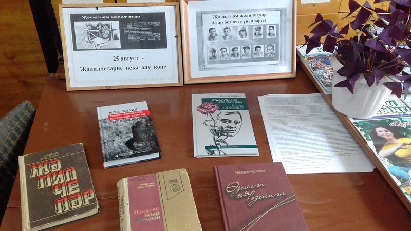 В честь этого события в Среднемешинской сельской библиотеке была приготовлена книжная выставка на тему “Җәлилчеләр рухы мәңгелек”. В выставке представлены книги поэта патриота М.Джалиля и его соратников. Джалиль и имена его соратников в наших сердцах.