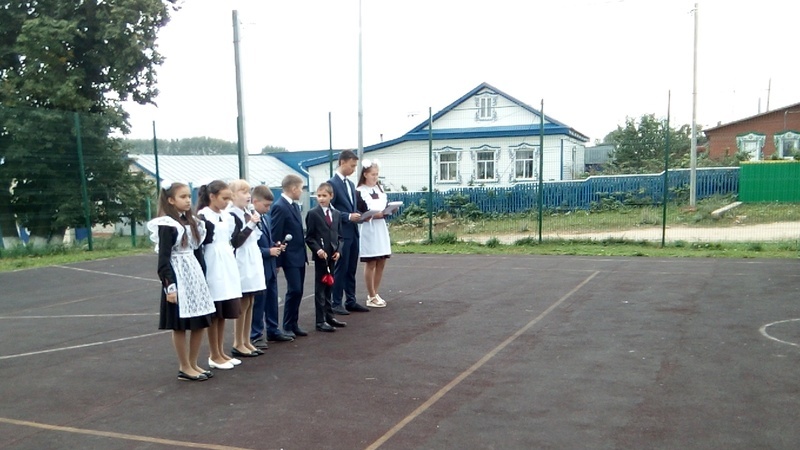 Это радостный и в то же время грустный праздник. Радостный - все вновь встречаются с друзьями и учителями. Грустный - прощание с летом. Несмотря ни на что все ждут этот праздник с нетерпением. С вступительным словом День знаний открыл директор школы А.А.Ибушев. Он поздравил с началом учебного года, ознакомил с достижениями прошлого учебного года и дал слово первоклассникам. На первый класс в этом году поступают 3 учащихся, которые пришли в сопровождении родителей. Первоклассники показали свои таланты и им был выручен ключ на Мир знаний. Гости тоже пришли не с пустыми руками, руководитель ООО "Агролак" Ф.Ф.Гилязетдинов принтер.