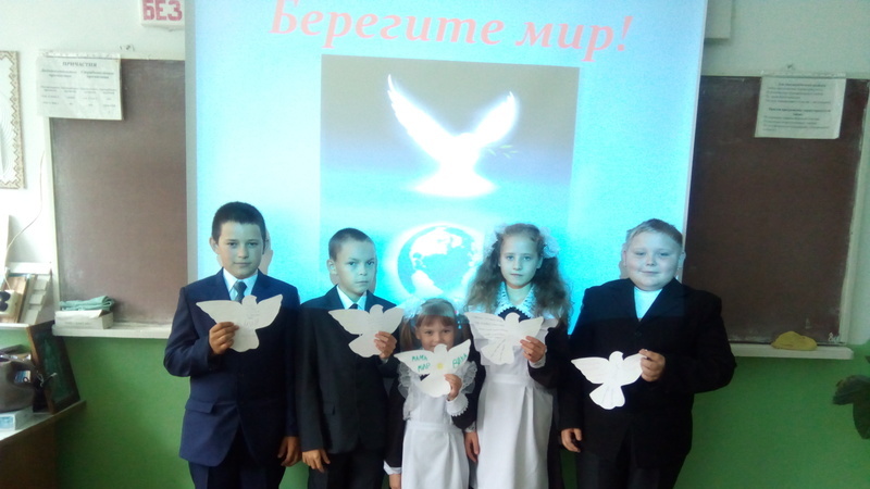 Детям было предложено составить пословицы о мире и на вырезанных из бумаге белых голубях написать послание для потомков. Праздник завершился песней «Солнечный круг».