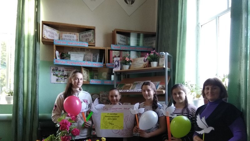 Цель этого дня – укрепить идеалы мира, как внутри страны, так и между нациями. 21 сентября, библиотекарь Айдаровской сельской библиотеки А.Фаляхова совместно с дирктором СДК для детей, посещающих объединение “Тамчы” провели информационный час. Они узнали об истории праздника, о символе мирной жизни – белом голубе, о значимости мира, о его важности для всего человечества.