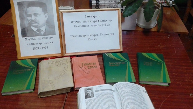 В честь 140 - летия со дня рождения великого татарского драматурга, писателя Г. Камала в Среднемешинской сельской библиотеке 3 января была поставлена книжная выставка под названием "Халык драматургы Галиәсгар Камал".
