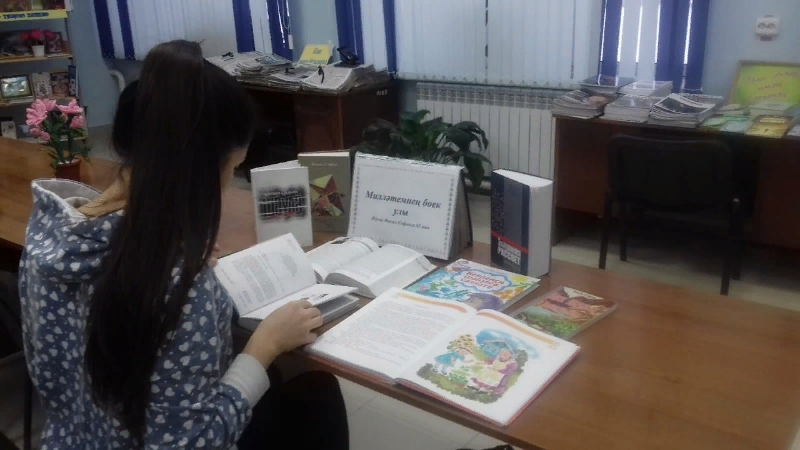 На выставке была освещена биография Ф.Сафина, также выставлены его книги. Все посетители библиотеки могут ознакомиться с выставкой.