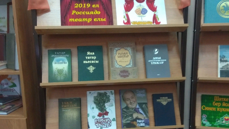 В 2019 году в каждой библиотеке должна быть оформлена постоянно – действующая выставка, посвящённая Году театра. Шадкинская сельская библиотека предлагает вашему вниманию книжно - иллюстративную выставку под названием “ Театр яктылыкка нурга илтә, кире юлга җибәрми уңга илтә”. На которой представлены книги об истории создания театра, о видах театра, о театральных педагогах и актёрах, и художественная литература.