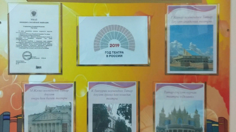 В Шадкинской сельской библиотеке оформлен стенд под названием “ 2019 ел – Россиядә театр елы”. На которой представлены информации театров города Казани и Указ Президента РФ В.В. Путина.