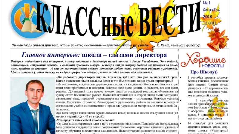 Традиционно в первую неделю нового года в свет вышел новогодний выпуск нашей школьной газеты "КЛАССные вести" Издательского Дома Тюлячинской средней общеобразовательной школы. Редакционный совет поздравляет всех с Наступившим Новым годом и желает необычных проектов, интересных встреч, новых идей!
