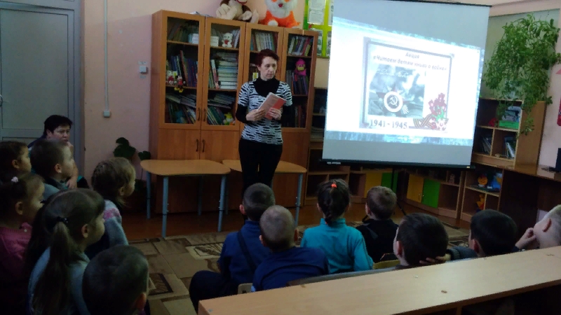 В ходе мероприятия были прочитаны стихи Шапиро Т. «Я в солдатики играю», Маршака С. «Разговор с внуком», Белозерова Т. «День Победы», Благининой Е. «Шинель», Пивоварова С. «Старый снимок». В конце мероприятия были показаны мультфильмы о ВОВ: «Василек» и «Солдатская сказка».