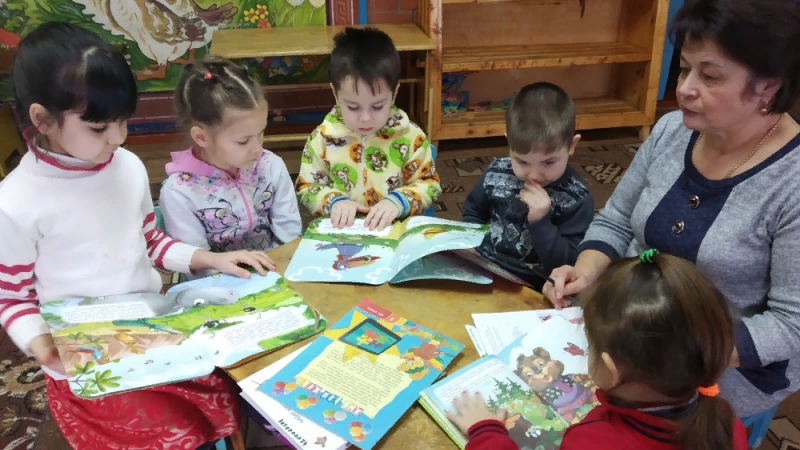 В нашем Ленинском детском саду,дети старшей-подготовительной группы любят проводить много времени в книжном уголке, рассматривая иллюстрации к любимым сказкам, им нравится слушать рассказы и стихи. Воспитатели воспитывают бережное отношение к книгам с раннего возраста.