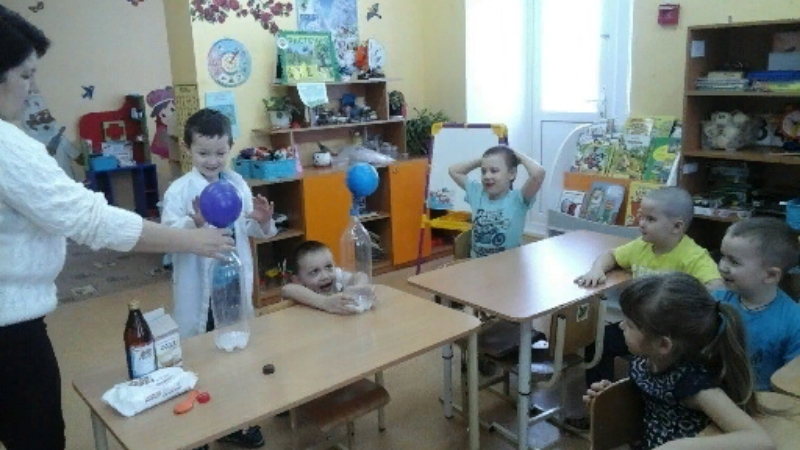 Это объясняется тем, что им присущи наглядно-действенное и наглядно-образное мышление, а экспериментирование как никакой другой метод соответствует этим возрастным особенностям. Мы в детском саду стараемся создать оптимальные условия для наблюдения за явлениями природы, животным и растительным миром, а также для экспериментирования и опытнической деятельности. В подготовительной группе опыты и эксперименты проводятся очень часто. Сегодня дети познавали ,как вырабатывается электричество при помощи шара и как можно надуть шар при помощи чайной соды. Последнее вызвало бурю восторга и восхищения.