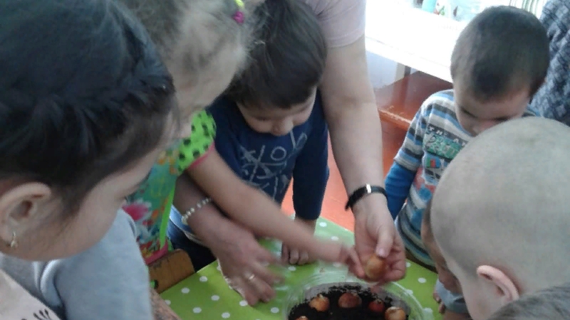 В нашем детском саду охране и укреплению здоровья воспитанников придается большое значение. Много мероприятий проводится для того,чтобы наши дети были здоровыми. С этой целью мы с детьми посадили лук на подоконнике.Теперь мы каждый день наблюдаем за посаженным луком.