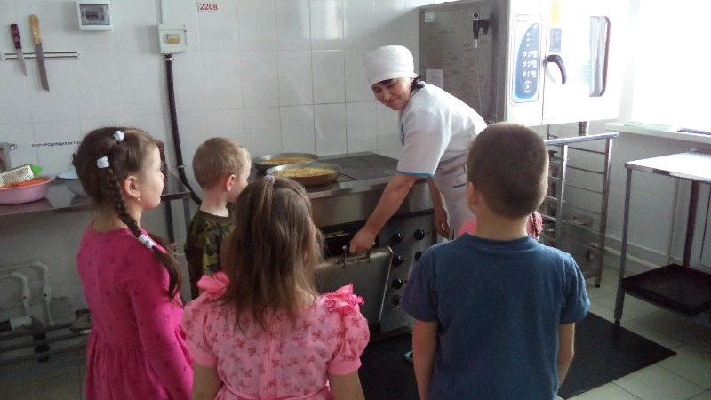 Мы сегодня в Шадкинском детском саду со старшей группой ходили на экскурсию – на кухню детского сада. Ребята увидели, где им готовят вкусные супы и каши. Повар Гулнира Сайфулловна объяснила детям, как надо готовить пищу. Детям очень понравился экскурсия на кухню.