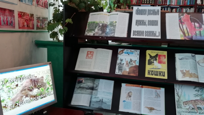 Мало найдется в мире людей, кто остается равнодушным к этим пушистым, подвижным, ласковым и очень умным домашним животным. Речь идет, конечно же, о кошках. В день кошек 1 марта в Шармашинской сельской библиотеке была оформлена книжная выставка «Кошки разные нужны, кошки всякие важны…», где были представлены энциклопедии о домашних кошках и книги о семействе кошачьих.