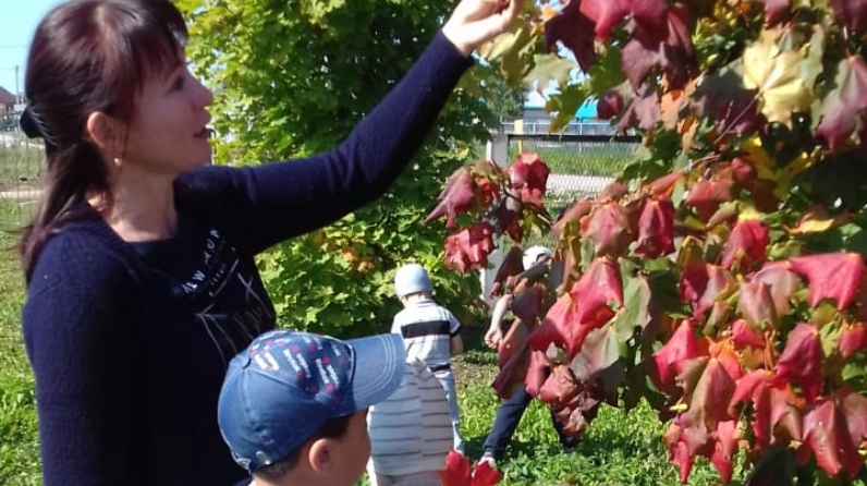Сегодня дети старшей группы, совместно с воспитателями Исхаковой Л.Ф и Сабирзяновой Л.М, совершили осеннюю экскурсию по территории детского сада. В ходе экскурсии воспитатели рассказали детям о самом красивом времени года – золотой осени, о ее приметах. Дети с удовольствием поиграли с кленовыми листочками, пошуршали идя по экологической тропе, рассмотрели разные листья, читали стихи, поиграли в игры «Дует, дует ветерок», «Мы листики осенние», «Угадай листок по загадке».