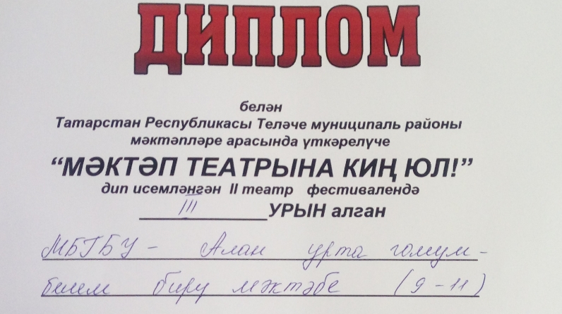 9 октября в Баландышском сельском клубе состоялся районный конкурс театрального мастерства школьников “Мәктәп театрына киң юл”. В конкурсе приняли участие детские творческие коллективы из школ района. Нашу школу представили учащиеся начальных, 10 классов и заняли третье место. Желаем руководителям группы и всем участникам конкурса здоровья, творческих успехов, новых побед!
