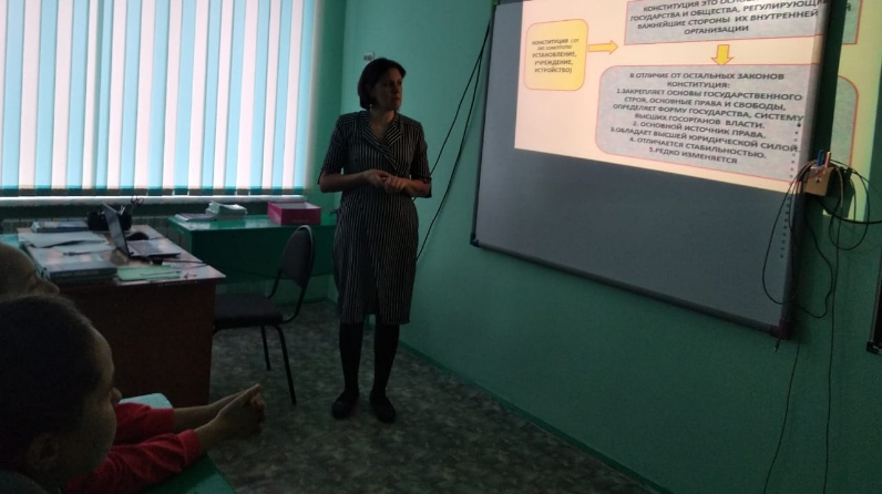 6 ноября - День Конституции Республики Татарстан. Учитель обществознания Хасаншина З.Р. Верхнекибякозинской средней школы ознакомила учащихся историей Конституции Республики Татарстан
