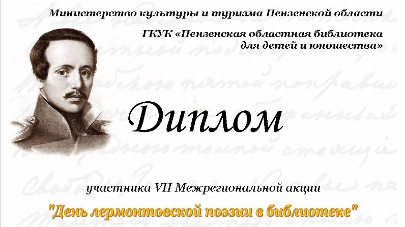 Среднемешинская сельская библиотека присоединилась к межрегиональной акции «День лермонтовской поэзии в библиотеке» и была награждена дипломом.