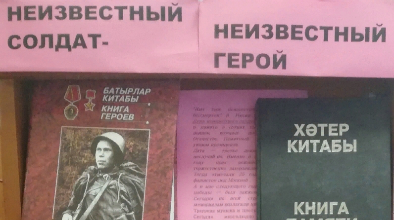 В Ачинской сельской библиотеке была оформлена книжная выставка "Неизвестный солдат-неизвестный герой" был проведен обзор, рекомендательная беседа по выставке.