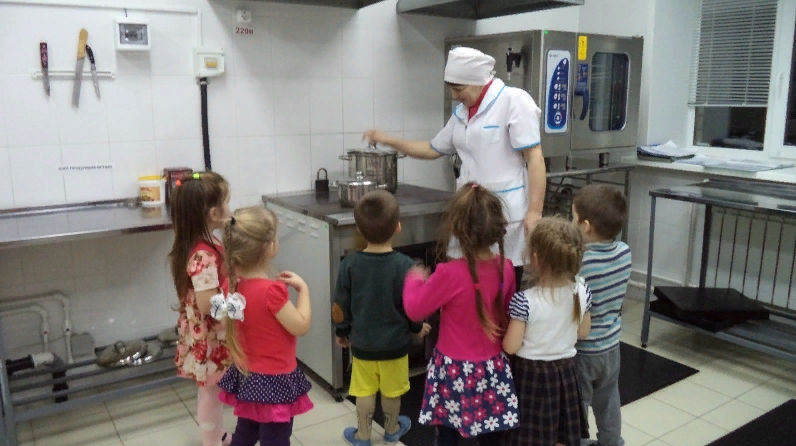 Мы сегодня в Шадкинском детском саду со средней группы ходили на экскурсию – на кухню детского сада. Ребята увидели, где им готовят вкусные супы и каши. Повар Гулнира Сайфулловна объяснила детям, как надо готовить пищу. Детям очень понравилась экскурсия на кухню.