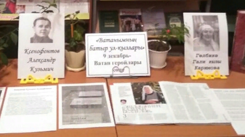Вниманию зрителей была предложена книжная выставка “Ватанның батыр уллары", на которой были представлены книги о героях разных времен.