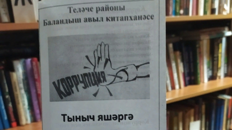 9 декабря - День борьбы с коррупцией, в связи с этим днем в Баландышской сельской библиотеке изготовлен буклет "Коррупциягә :“Юк!” дип әйтик”.