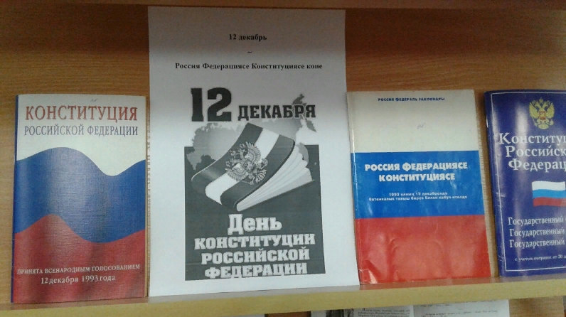 С Днем Конституции России 12 декабря в Большенырсинской сельской библиотеке провели беседу на тему: “Знай историю своей страны!” В ходе беседы речь шла об истории Конституции России.