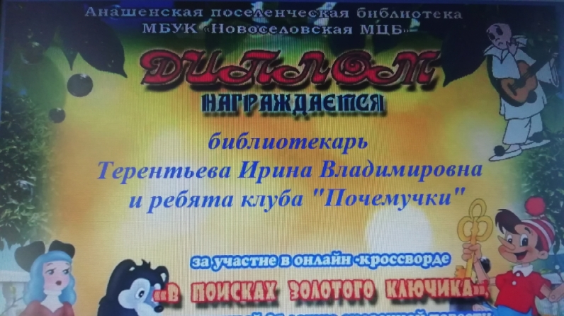 Анашенская поселенческая библиотека предлагает разгадать кроссворд. посвященный 85-летию сказочной повести Алексея Толстого «Золотой ключик, или Приключения Буратино».