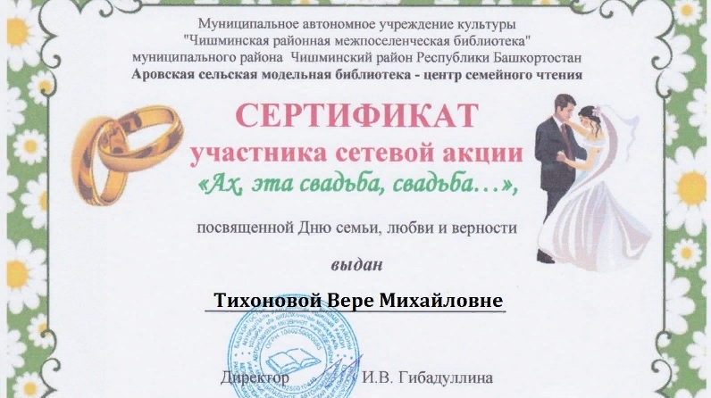 Организаторы:"Чишминская районная Межпоселенческая библиотека"Чишминский Муниципальный район Республика Башкортостан.Аровская сельская модельная библиотека-центр семейного чтения. "Ах, эта свадьба, свадьба...",