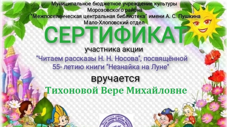 Ачинская сельская библиотека приняла участие в акции "Читаем рассказы Н.Н.Носова", посвященной 55-летию книги "Незнайка на Луне".