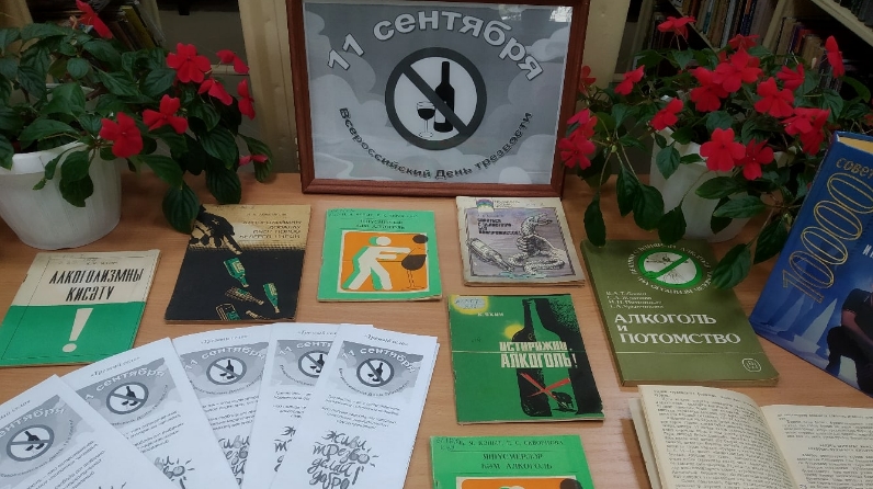 Через этот буклет читатели получат информацию о вреде алкоголизма для общества и человека. Буклеты были представлены на выставке под названием “11 сентября – Всероссийский день трезвости".