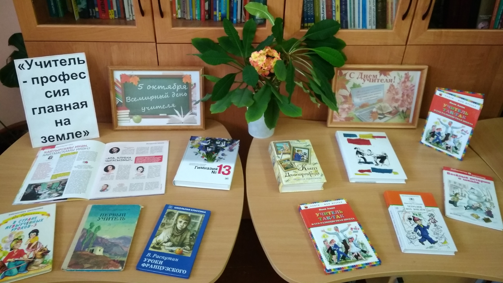 2 октября в Тюлячинской детской библиотеке была оформлена книжно – иллюстративная выставка «Учитель – профессия главная на земле». Дню учителя была посвящена данная выставка, на которой были представлены художественные и документальные произведения, репродукции картин, рассказывающие о жизни учителей в разные периоды истории. Привлекли внимание юных читателей книги Ч.Айтматова «Первый учитель» и А.Платонова «Песчаная учительница», где авторы раскрывают образ учителей, воевавших в Великой Отечественной войне. Об особенностях нравственных устоев педагогов в военное и послевоенное время можно было узнать из книг В.Распутина «Уроки французского».