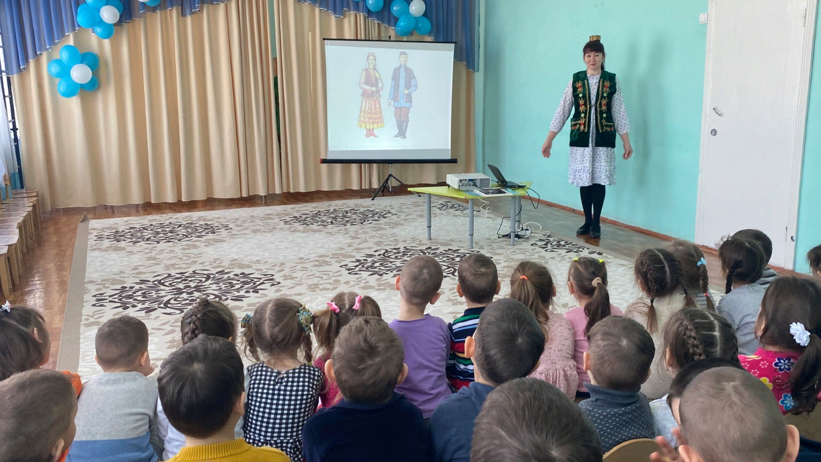 Воспитатель по татарскому языку с интересом знакомила с традициями народов Поволжья, сформировала у детей знания и представления об образе жизни людей, населяющих Поволжье, их обычаях, традициях, фольклоре и национальных костюмах. Сформировать у детей умение применять полученные знания, представления о народах Поволжья в самостоятельной деятельности являются главными задачами таких занятий.