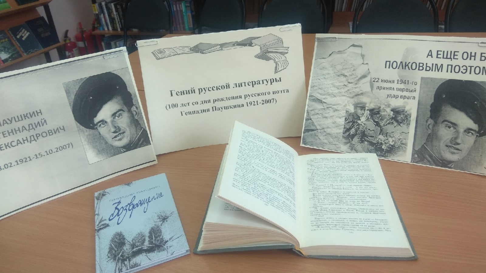 Русскому писателю Геннадию Паушкину в этом году исполняется 100 лет со дня рождения. По этому поводу в Шадкинской селькой библиотеке оформлена тематическая выставка “Гений русской литературы”. Геннадий Паушкин родился в Казани 28 февраля 1921 года. Окончил исторический факультет Казанского университета. В разные годы работал заведующим отделом культуры и искусства редакции «Комсомолец Татарии», корреспондентом «Комсомольской правды», консультантом, заведующим русской секцией Союза писателей ТАССР. Наши читатели библиотеки могут познакомиться с творчеством поэта и его увлекательными книгами.