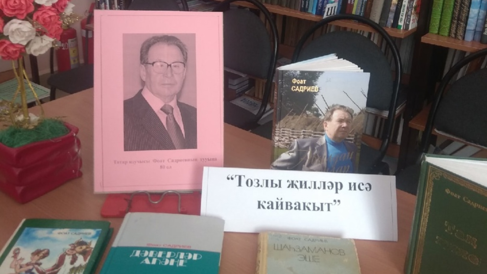 10 марта исполнилось 80 лет со дня рождения известного писателя Фоата Садриева, который известен читателям множеством произведений: "Таң җиле"," Бәхетсезләр бәхете"," Ач тәрәзәң " и другие. В Шадкинской сельской библиотеке была организована книжная выставка, освещающая творчество писателя.
