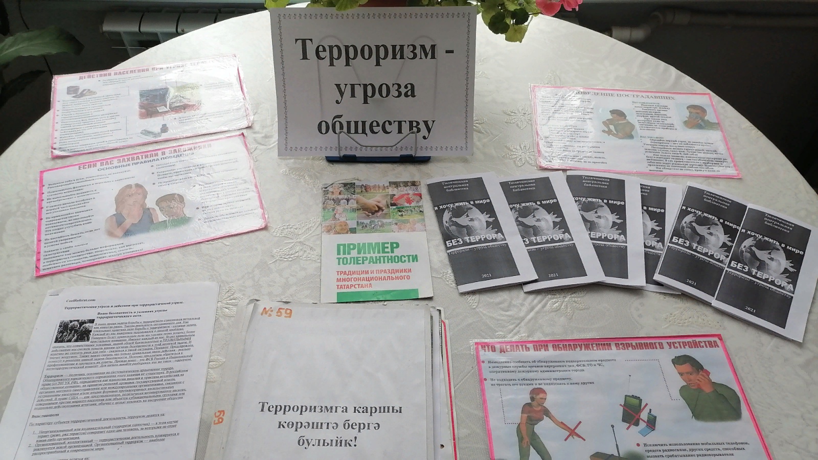 В читальном зале Тюлячинской центральной библиотеки была организована выставка под названием «Терроризм – угроза обществу».