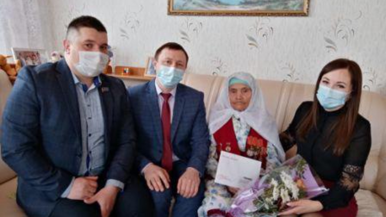 Поздравить ветерана приехали: Заместитель Руководителя Исполнительного комитета по социальным вопросам Гиниятуллин Д.С., глава Айдаровского сельского поселения Хазиев Р.Р. В честь юбилярши от имени Президента Российской Федерации В.В.Путина ее поздравили и пожелали ей доброго здоровья, бодрости духа и прожить еще много-много лет, ощущая теплоту и заботу своих близких.