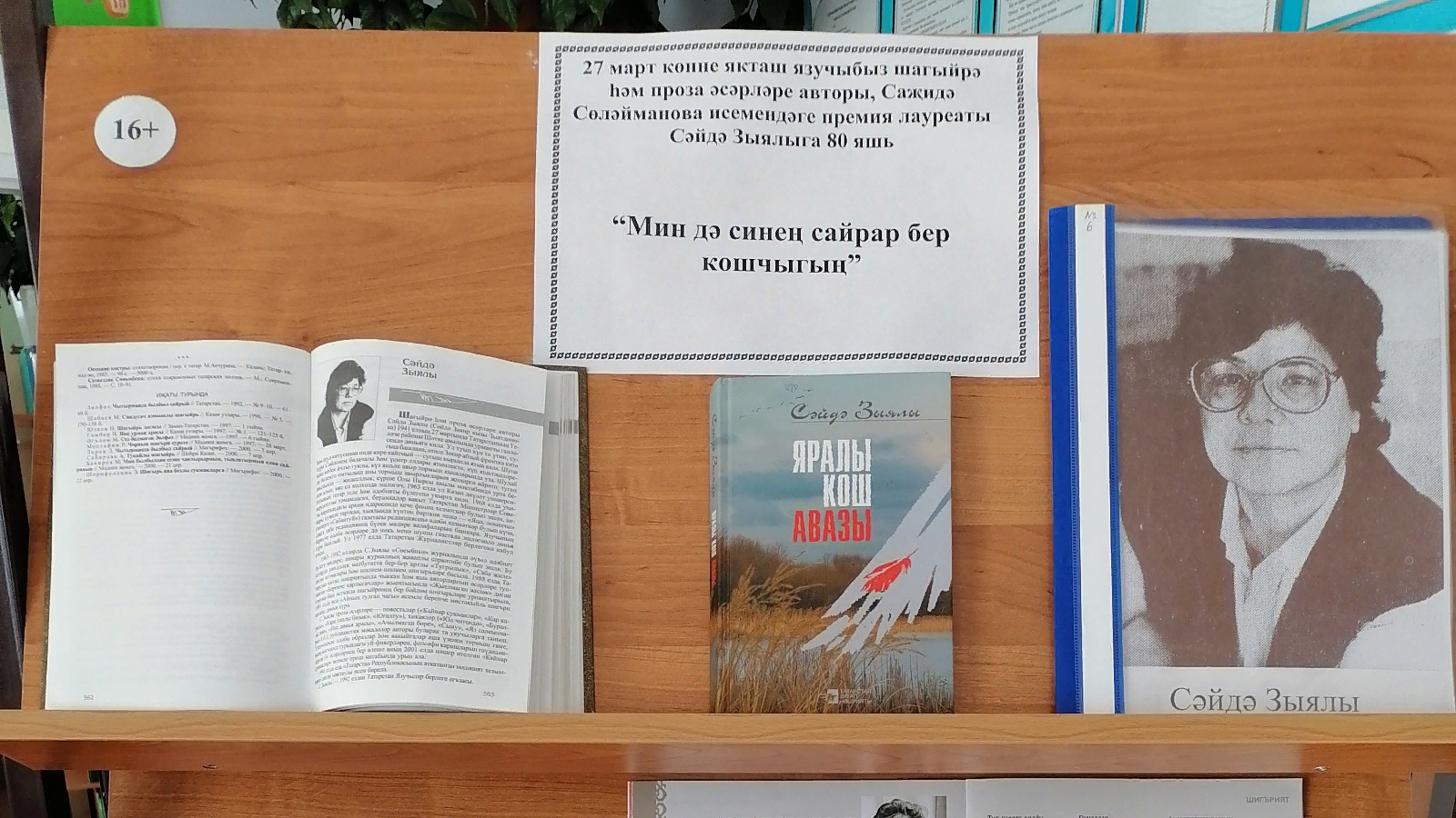 27 марта писателю - поэтессе члену Союза писателей Республики Татарстан, Заслуженному работнику культуры Республики Татарстан, лауреату литературной премии имени С.Сулеймановой фонда “Рухият”, нашей землячке Сайде Закировне Зыятдиновой исполняется 80 лет.С.Зыялы известна широкому кругу читателей своими книгами “Айның тулган чагы”, “Сулар үргә акмый", включающих стихотворные произведения, повестями «Кайнар сукмаклар», «Кар карасы», «Кара таплы бизәк», «Югалту», рассказами «Юл читендә», «Буранлы төн», «Ике дөнья арасы», «Ачылмаган бөре», «Сыну», «Яз салкыннары» и публицистическими статьями. В целях ознакомления читателей с ее творчестовом в Тюлячинской межпоселенческой библиотеке организована книжная выставка “Мин дә синең сайрар бер кошчыгың”, а также в социальной сети поставлена презентация.