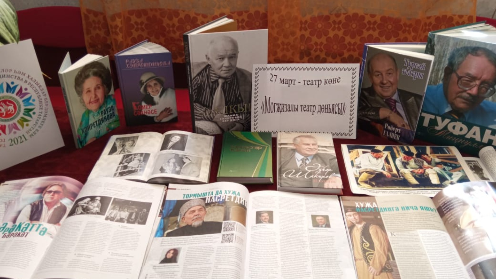 В Максабашской сельской библиотеке была организована выставка, посвященная этому знаменательному дню. На выставке были представлены книги, посвященные легендарным артистам татарского театра. Также можно было ознакомиться с журналом “Сәхнә”, в котором уделяется большое место культурной деятельности нашей республики. В ходе обзора были показаны фотографии из жизни театра.