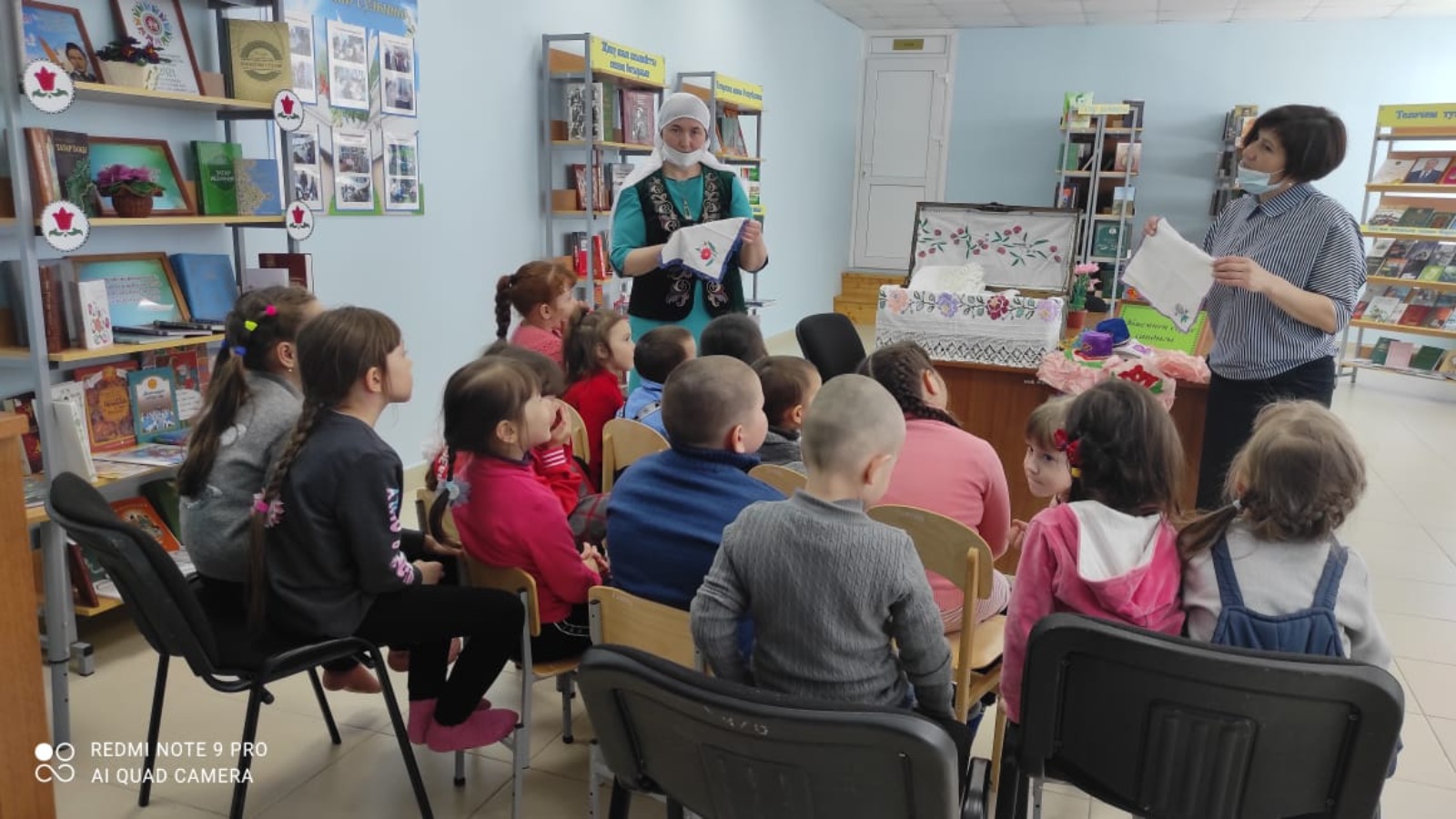 В Старозюринской сельской библиотеке прошло мероприятие “Әбиемнең серле сандыгы” с детьми, посещающими детский сад “Ак каен”.