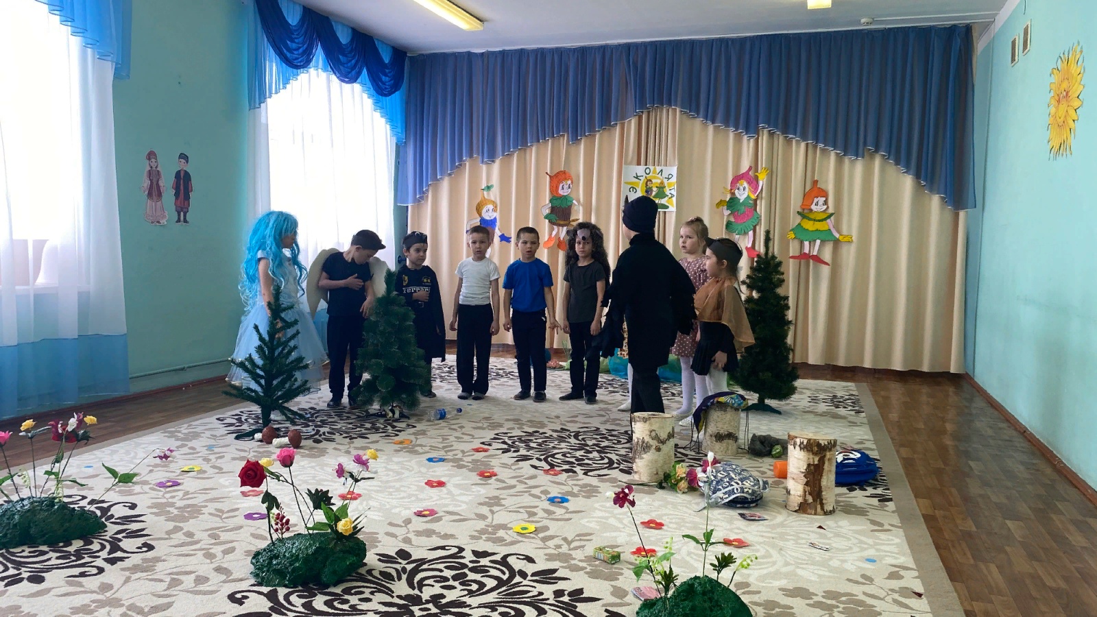 В рамках образовательного мероприятия детсадовцами была показана экологические сказки "Берегите природу" и «Как дети землю спасли» , повествующая о правилах экологии и заботы об окружающем мире. У детей дошкольного возраста преобладают сказочные представления о живой природе, поэтому особая роль в формировании экологической культуры ребенка отводится театрализованной деятельности. Сказки воспитывают в детях культуру поведения, бережное отношение к живому, развивают познавательный интерес к природе.