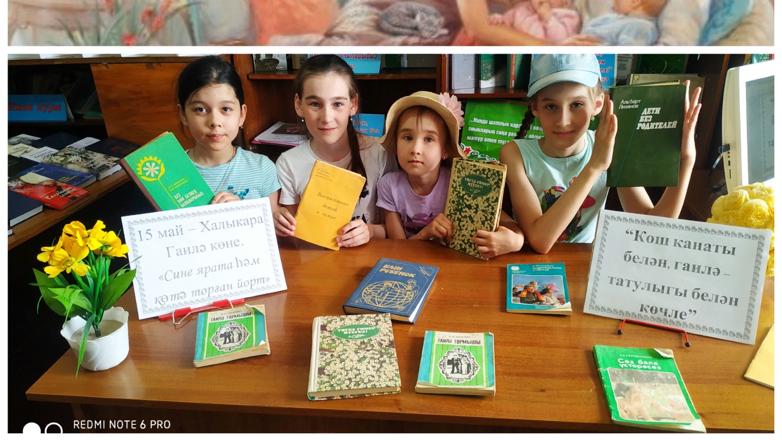 15 мая, в Международный день семьи, Среднемешинская сельская библиотека совместно с клубом провела информационный час “Кош канаты белән, гаилә татулыгы белән көчле” и игру “Угадай стихотворение”. Читателям было рассказано об истории Дня семьи. Организована книжная выставка под названием “Сине ярата һәм көтә торган йорт”.