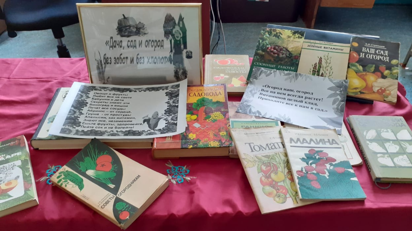 22 июля в Абдинской сельской библиотеке была оформлена выставка-совет «Сад. Огород. Палисад», цель которой – предоставить полезную информацию по выращиванию садово-ягодных и овощных культур. Выставка содержит практические советы по уходу за садом, за огородом. Как устроить сад разумно? Как обеспечить растениям подходящие условия? Как сэкономить время по уходу за растениями? И, как при этом получить богатый урожай? - на такие и другие интересующие вопросы читатели могли найти ответы, прочитав книги «Энциклопедия огородника», «Энциклопедия садовода».