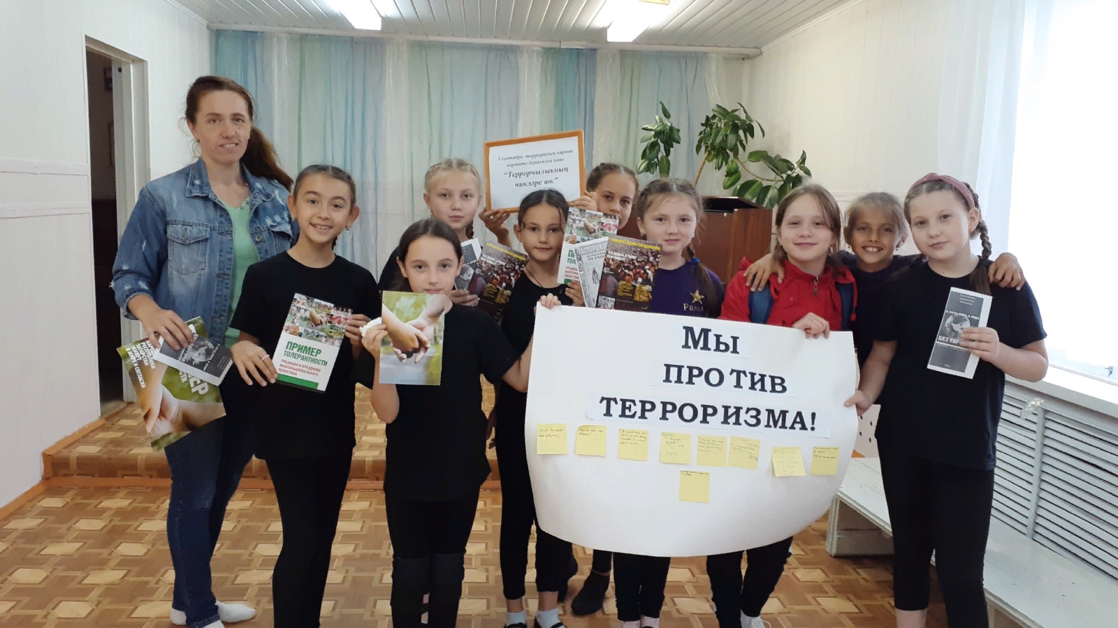 3 сентябрь көнне безнең ил терроризмга каршы көрәштә бердәмлек көнен билгеләп үтте. Без исә, китапханәчеләр, үз чиратыбызда, терроризмга мәгълүмати каршылык күрсәтергә һәм әлеге куркыныч күренешне профилактикалауга үз өлешебезне кертергә тиеш. Шул максат белән Теләче балалар китапханәсе «Без терроризмга каршы!» дип аталган квилт оештырдылар. Укучылар терроризмның нәрсә икәнлеге, аның нинди төрләре һәм максатлары булуы, терроризм тарихы турында белделәр. Соңгы елларда дөньяда кылынган террорчылык актлары искә төшерелде. Алдан ук беркетелгән кәгазь кисәкләре белән плакат әзерләнде, аларга һәркем тынычлык, игелек һәм гаделлек турында үз теләкләрен язды. Ахырда балаларга бер-беребезне яратырга һәм хөрмәт итәргә кирәк дигән теләкләр белән зур булмаган бүләкләр таратылды.