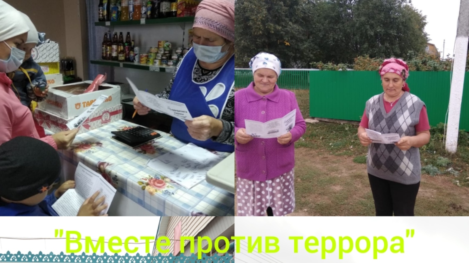 В этот день работники культуры Айдаровского сельского дома культуры совместно с библиотекой вышли на акцию на центральные улицы села для информирования жителей посредством раздачи памяток, буклетов "Вместе против террора", содержащих важную информацию о правилах поведения в случае возникновения террористической угрозы, а также о мерах предосторожности, которые необходимо соблюдать во время пребывания в местах массового скопления людей.