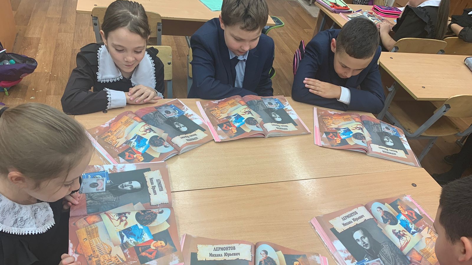 К мероприятию была оформлена книжная выставка на тему «Мир Лермонтова», на которой представлена литература, повествующая жизнь и творчество великого поэта, а также сами произведения Михаила Юрьевича. С ребятами начальных классов была проведена литературная программа «Творенья М.Ю. Лермонтова». Детям было предложено отправиться в виртуальное путешествие, перелистать страницы биографии М. Ю. Лермонтова, обратиться к его произведениям. Участники мероприятия получили познавательный материал, просмотрев видеоролик «Поэзии чудный гений», прикоснулись к богатому культурному наследию поэта. Ребята вспомнили строки из известных произведений русского классика «Парус», Бородино», «Утес», «Листок» и другие.