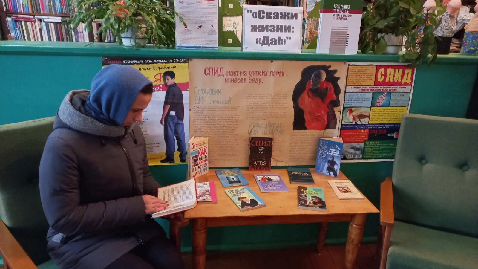 В Шармашинской сельской библиотеке прошел устный журнал «Нет - наркотикам». Библиотекарь с помощью презентации «СПИД идет на мягких лапах и несет беду» предоставила информацию для читателей о СПИДе. В ходе встречи говорили о том, что такое ВИЧ-инфекция, чем она отличается от СПИДа, о путях заражения ВИЧ и возможности инфицирования, о мерах профилактики. Библиотекарь старалась донести мысль о том, что проблема ВИЧ-инфекции касается сегодня каждого. Всем участникам встречи вручались красные ленточки, символизирующие осознание людьми важности проблемы СПИДа. Читателям были предложены буклеты «СПИД – угроза жизни», содержащие важную информацию о смертельном вирусе, его признаках, путях передачи и профилактике. К данному дню была подготовлена выставка ««Скажи жизни: «Да!»