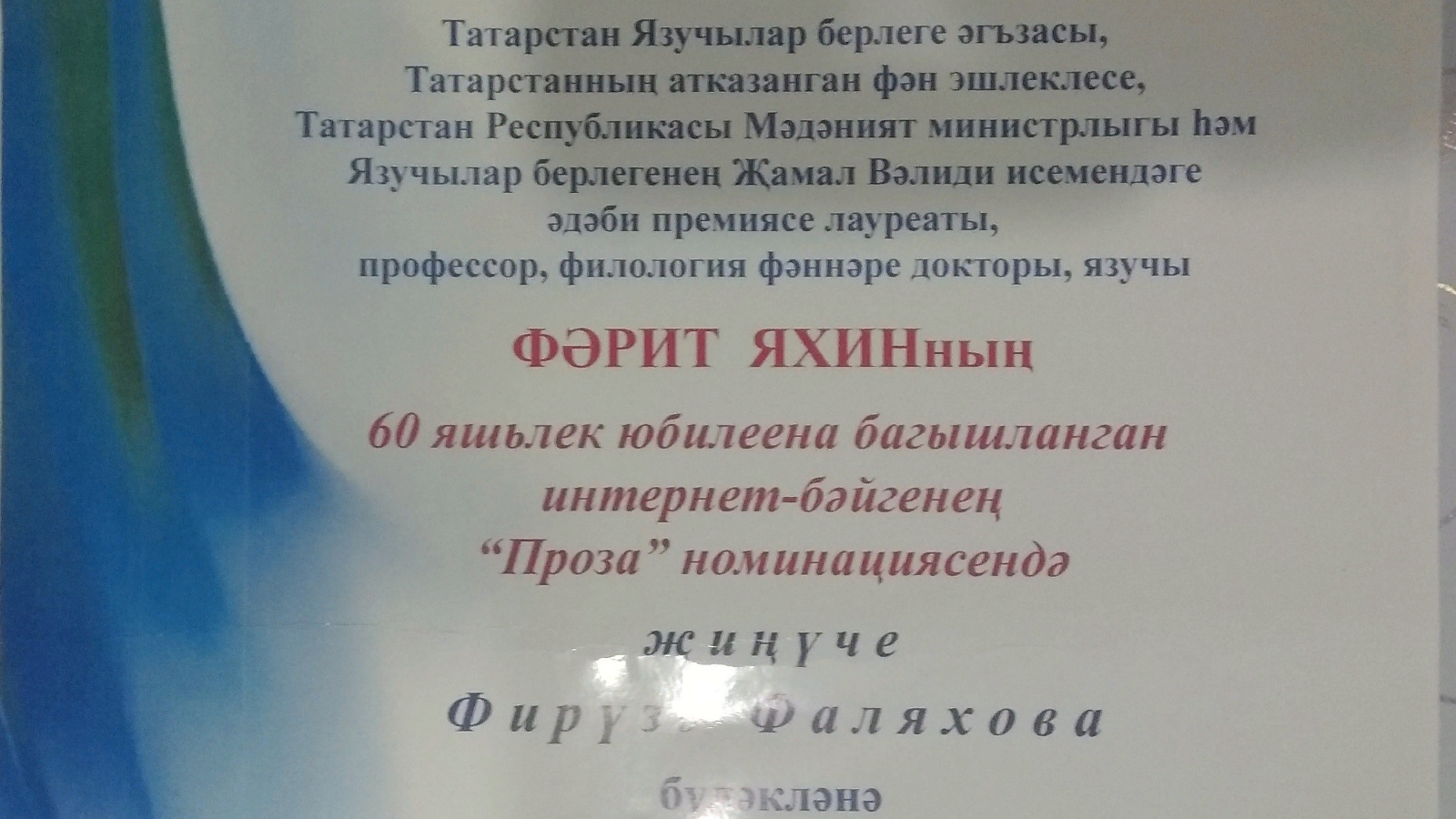 Ф.Фаляхова, читатель Айдаровской сельской библиотеки приняла участие в онлайн кункурсе “Читаем Фарита Яхина”, организованной Сармановской центральной библиотекой, и заняла 3 место в номинации «Проза».