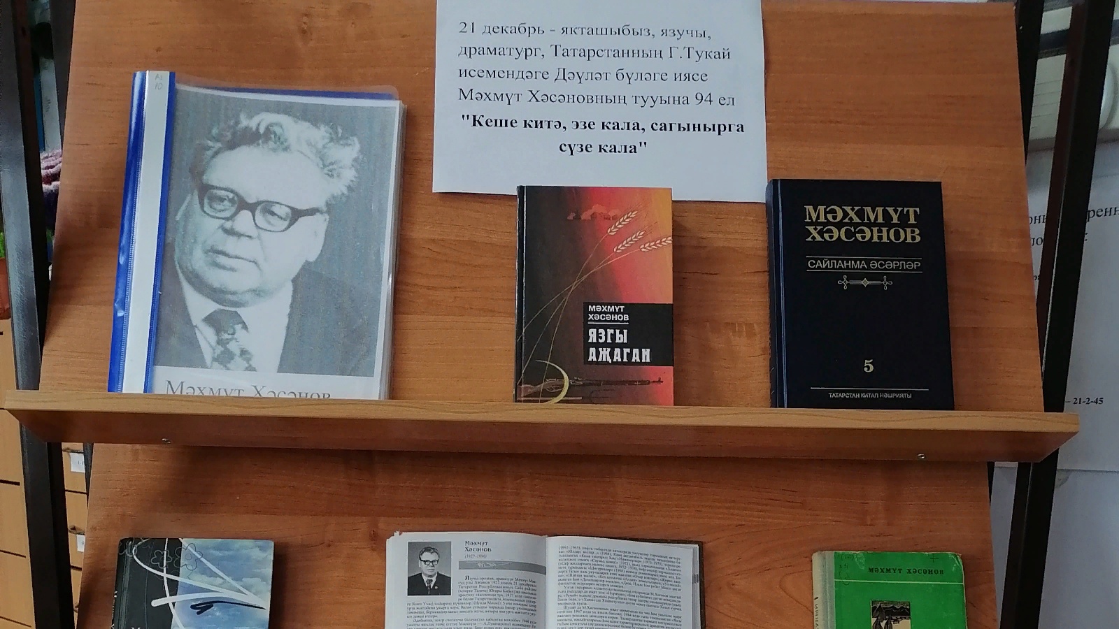 21 декабря, по случаю 94-летия со дня рождения выдающегося татарского писателя-земляка Махмута Хасанова, лауреата Государственной премии имени Габдуллы Тукая, в Тюлячской центральной библиотеке оформлена выставка по названием “Кеше китә, эзе кала, сагынырга сүзе кала”. А в социальной сети Инстаграм опубликована видеопрезентация о жизни и творчестве писателя.