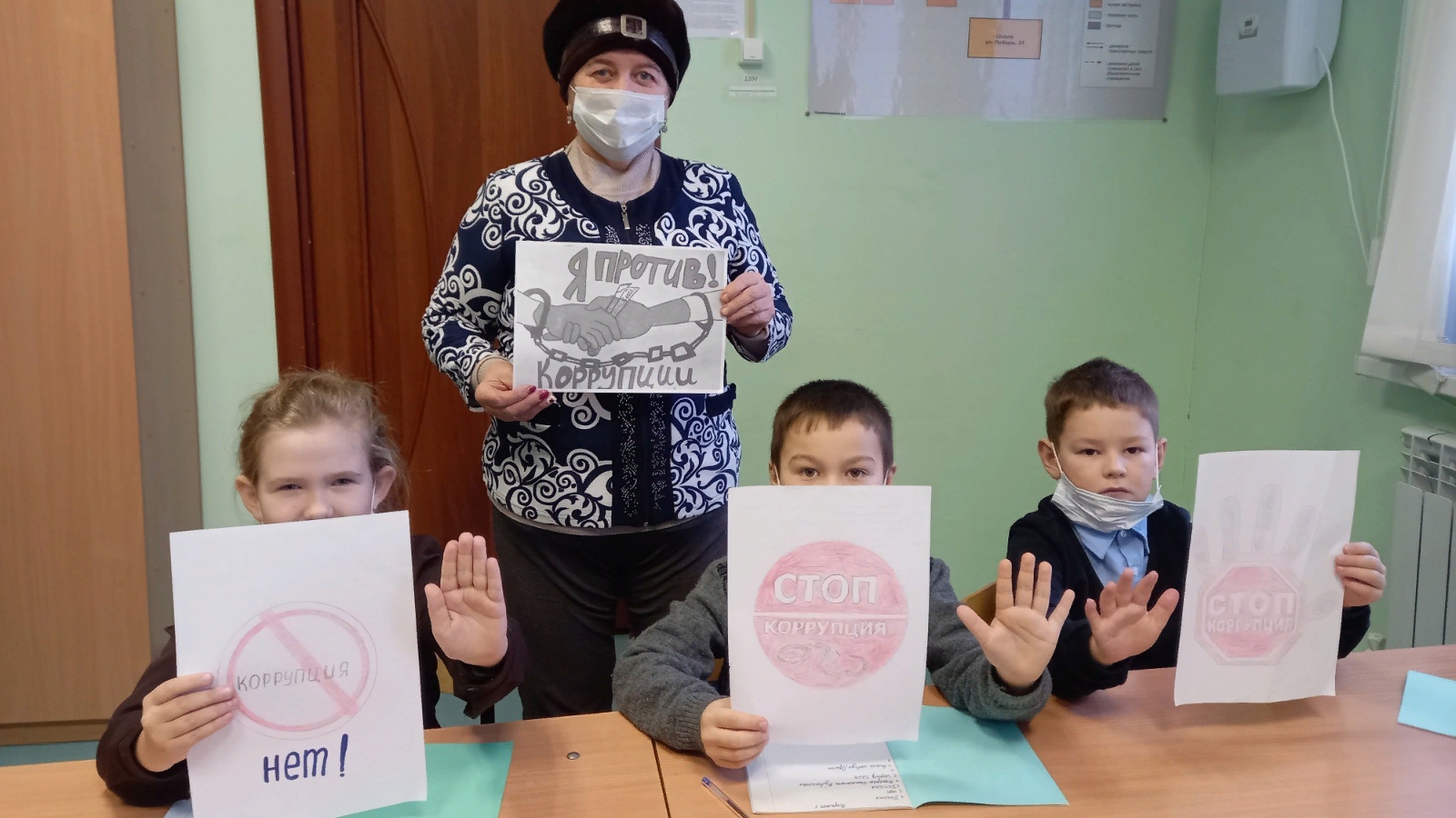 Библиотекарь Большемешинской сельской библиотеки Газизова Р. Ш. совместно с учителем Нижнесаврушской НОШ Бурханутдиновой Р. З. провела классный час, посвященный Дню борьбы с коррупцией. На классном часе, проведенном с целью ознакомления подрастающего поколения с гражданской позицией в борьбе с коррупцией, разъяснения понятия коррупции, мер борьбы с ней в нашей стране, учащиеся сделали рисунки.
